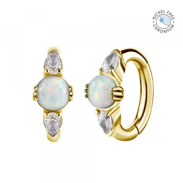 GOLD PVD CoCr NF OVAL BELLY CLICKER SET W. LAB CREATED OPAL & PREMIUM ZIRCONIA