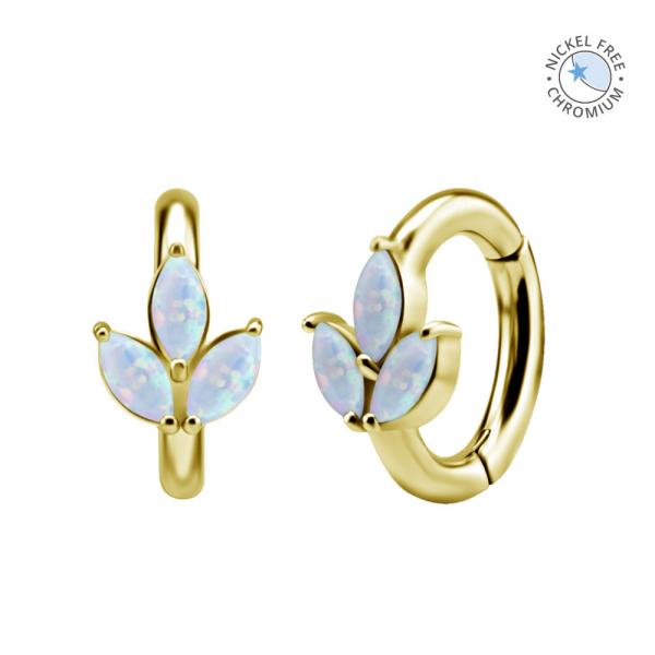 GOLD PVD CoCr NF OVAL BELLY CLICKER SET W. LAB CREATED OPAL