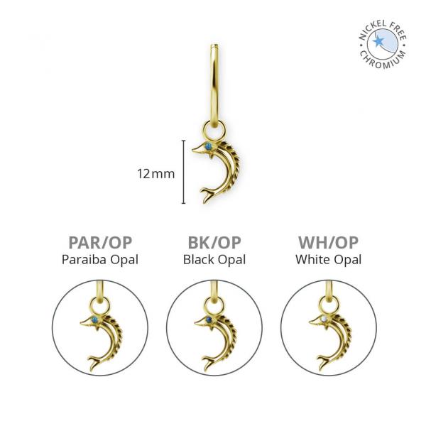 18K GOLD PVD CoCr NF FISH CHARMS SET W. LAB CREATED OPAL