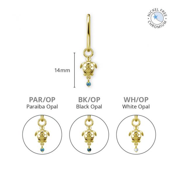 18K GOLD PVD CoCr NF SEA TURTLE CHARMS SET W. LAB CREATED OPALS