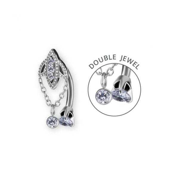 SS316L DOUBLE JEWELLED BANANAS SET W. PREMIUM ZIRCONIA AND CHAIN