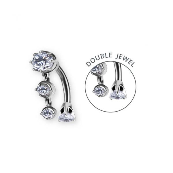 SS316L BELLY BANANA SET W. DOUBLE JEWELED AND DROP DANGLES