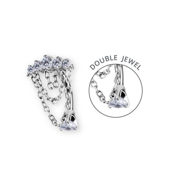 SS316L DOUBLE JEWELLED BANANAS SET W. PREMIUM ZIRCONIA AND CHAIN