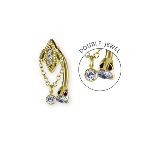 24K GOLD PVD SS316L DOUBLE JEWELLED BANANAS SET W. PREMIUM ZIRCONIA AND CHAIN