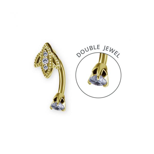 24K GOLD PVD SS316L DOUBLE JEWELLED BANANAS SET W. PREMIUM ZIRCONIA