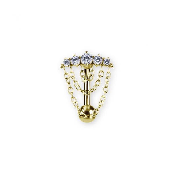 24K GOLD PVD SS316L BELLY BANANA SET W. PREMIUM ZIRCONIA AND CHAIN