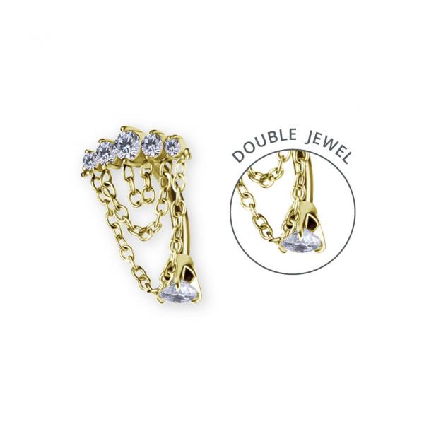 24K GOLD PVD SS316L DOUBLE JEWELLED BANANAS SET W. PREMIUM ZIRCONIA AND CHAIN