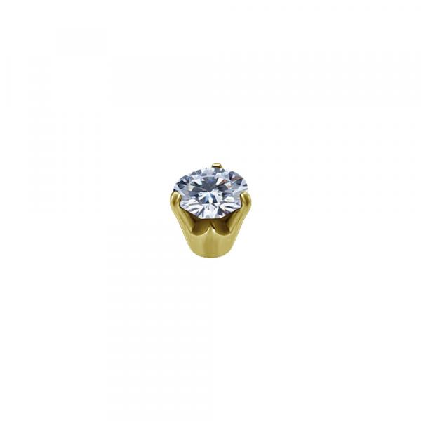 24K GOLD PVD SS316L BALL WITH ROUND PREMIUM ZIRCONIA, PRONG SET