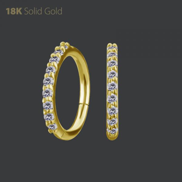 18K GOLD HINGED NOSE RING SET WITH PREMIUM ZIRCONIA