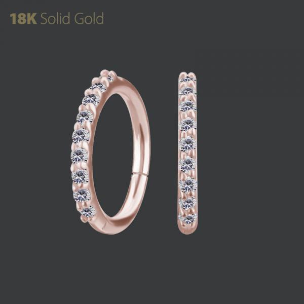 18K ROSE GOLD HINGED NOSE RING SET WITH PREMIUM ZIRCONIA