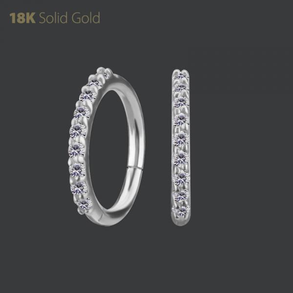 18K WHITE GOLD HINGED NOSE RING SET WITH PREMIUM ZIRCONIA