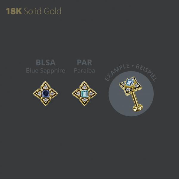 18K GOLD INTERNAL ATTACHMENT SET W. PRINCESS CUT LAB CREATED GEMSTONE