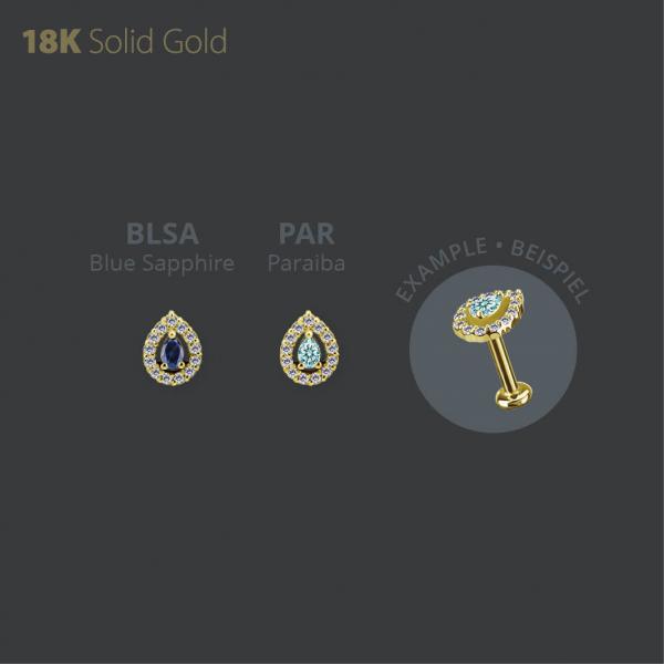 18K GOLD INTERNAL ATTACHMENT SET W. PEAR SHAPE LAB CREATED GEMSTONE
