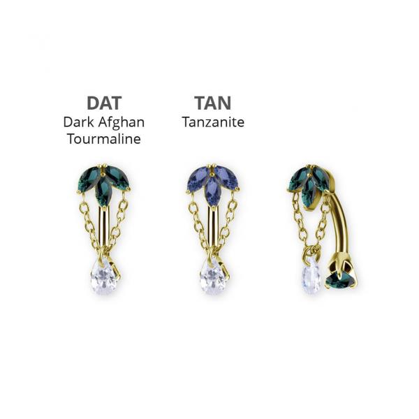 24K GOLD PVD SS316L BELLY BANANA SET W. DOUBLE JEWELED AND PEAR DROP DANGLES