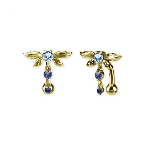 24K GOLD PVD SS316L BELLY BANANA SET W. PREMIUM NANO GEMS AND ROUND DROP DANGLES