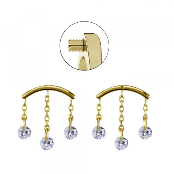 24K GOLD PVD TITANIUM INT. ATTACHMENT FOR FLAT HELIX W. CUBIC ZIRCONIA