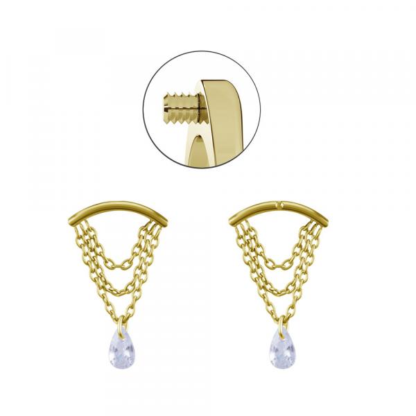 24K GOLD PVD TITANIUM INT. ATTACHMENT FOR FLAT HELIX W.CUBIC ZIRCONIA