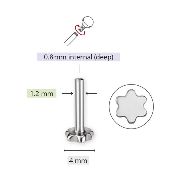 TITANIUM DEEP INTERNAL LABRET PINS WITH FLOWER PLATE