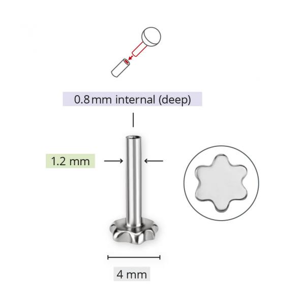 TITANIUM THREADLESS LABRET PINS WITH FLOWER PLATE