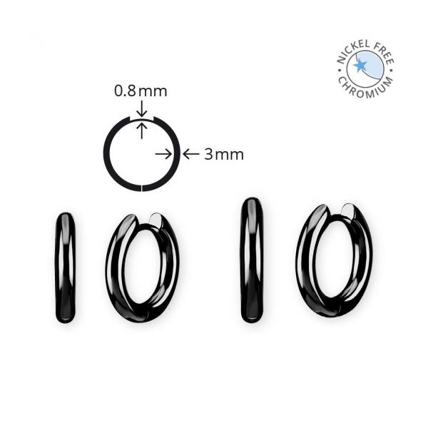 BLACK PVD CoCr NF HOOP EARRINGS (8GA/3.2MM W. 0.8MM PIN)