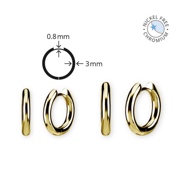 18K GOLD PVD CoCr NF HOOP EARRINGS (8GA/3.2MM W. 0.8MM PIN)